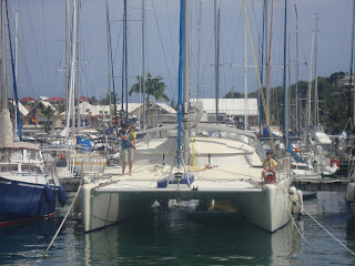Au chapitre des desagrements, pendant cette semaine dans la marina de Bas-de-Fort a Pointe-a-Pitre, on notera l'emotion suscitee par la chute de Luca sur Catanelo, atterri a pleine vitesse la tete sur une poulie: beaucoup de sang et la crainte de devoir recoudre, heureusement ecartee. Plus de peur que de mal.