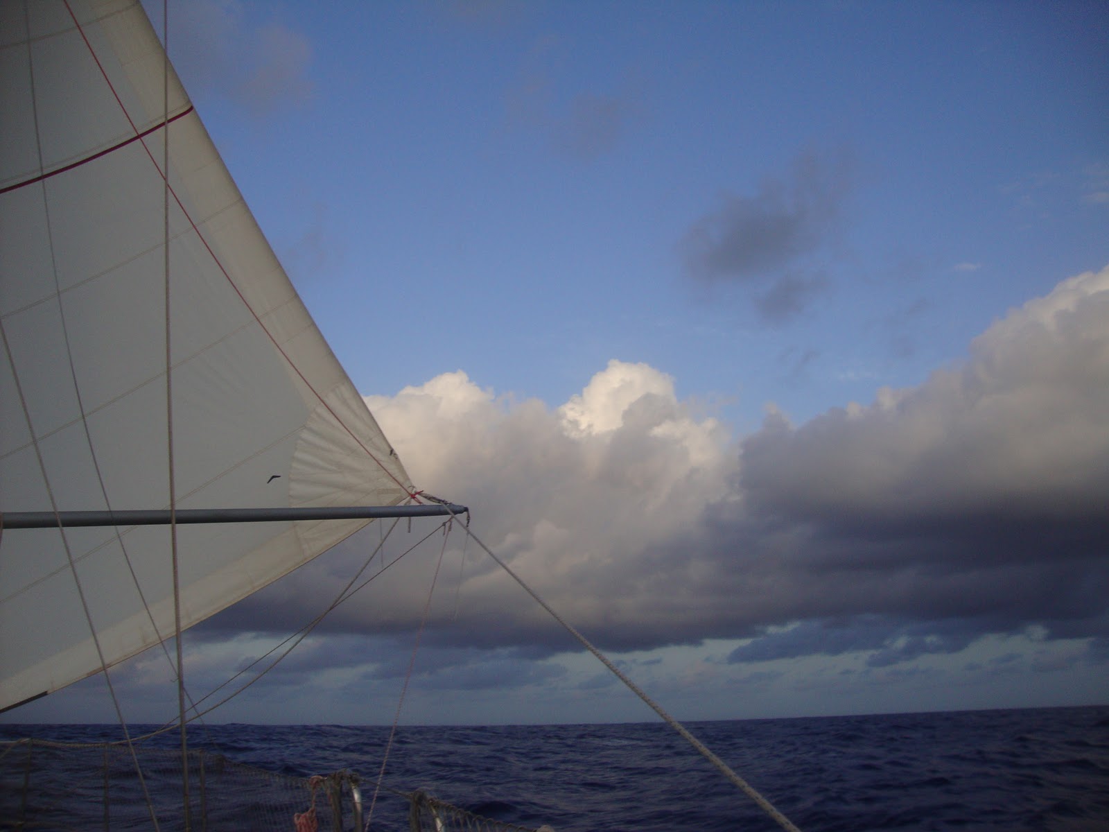 18h, nous levons, enfin, la grand voile. 6,3 noeuds.