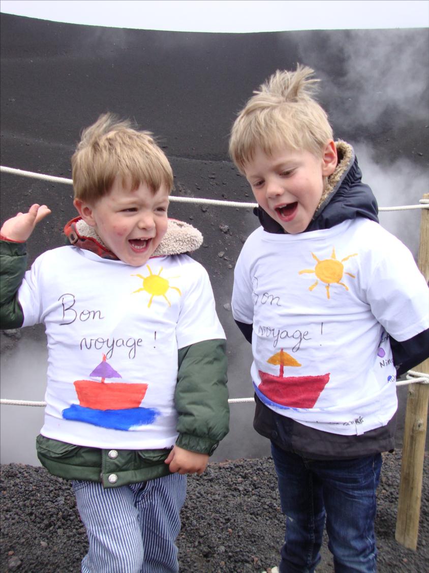 Heureux, et fier comme Ulysse terrassant le cyclope, Vadim a fete ses trois ans ce 4 juin sur le Volcan Etna, que nous avons grimpe en Fiat Panda 1981 (increvable), en telecabine puis en camion tout terrain. Pas de lave en fusion ni d'explosion fracassante, mais une tres belle promenade a pres de 3000 metres d'altitude dans un paysage lunaire, sur de la poussiere noire, chaude et fumante a perte de vue. Tres impressionant...