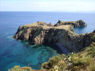 Arrives sur Panarea, nous mouillons l'ancre sur la cote est de la baie de punta Milazzese, a l'extremite sud de l'ile. Il y a la, comme en beaucoup d'endroits en Sicile, des vestiges de l'ere prehistorique: des traces d'un village de l'age du bronze (XVe au XII e siecles avant JC...) perche sur la pointe, d'ou on a l'impression d'avoir une vue sur l'infini - decidement nous n'avons rien invente, nos ancetres avaient incontestablement un sens inne du feng shui.... Nous partons a pied jusqu'au village de San Pietro, et cette promenade acheve de nous faire succomber au charme de l'endroit: la route, etroite et bordee de murets blancs, serpente dans la montagne entre les fleurs et les cactus geants. Des lezards, des petites voitures electriques; il y a ici quelque chose de l'Ile Fantastique...