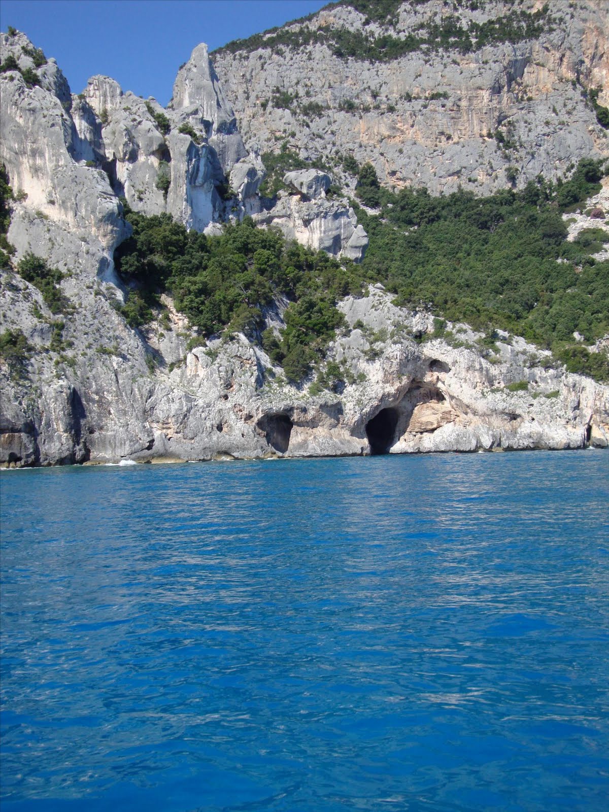 Le golfe d'Orosei, avec ses falaises de roche calcaire tombant a pic dans des eaux turquoises, est soufflant de beaute ("Mais c'est ici les Caraibes!" s'ecrie Vadim tandis que nous longeons la cote). Le golfe et ses grottes, d'apres notre petit guide de Sardaigne, etait autrefois un lieu d'election pour les phoques a capuchon - l'idee m'amuse beaucoup: a quoi peut bien ressembler un phoque a capuchon??