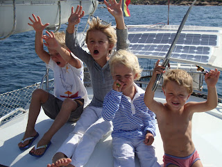 Nous partons donc la veille en fin de journee (apres que Marc ait plonge pour voir, allez encore une toute petite fois, l'etat de la quille...) pour aller nous attacher, pour la nuit, a une bouee situee devant la passe qui ouvre vers l'ouest, etroite bande de mer entre l'ile Asinara et le reste de la Sardaigne, truffee de hauts-fonds. Nous devrons la franchir pour passer "de l'autre cote" de la Mediterranee et entamer notre traversee transfrontaliere...