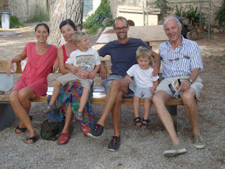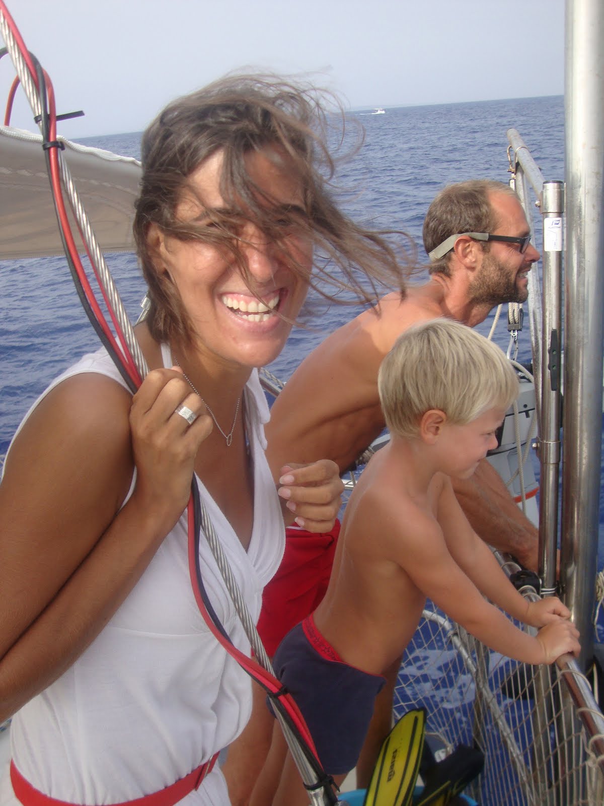 Formentera: un peu moins de cinq heures de navigation, comprenant le passage émouvant devant le majestueux paysage de l'île d'Es Vedra au large d'Ibiza: Manu est, évidemment, dans nos pensées... Trois jours à l'ancre près de la marina de la Salina, nous prenons le temps: baignades interminables dans le lagon, aller-retour à l'île d'Espalmador (où l'on renonce aux bains de boue après qu'un garde côte en dinghy nous ait expliqué gravement que c'était interdit parce que cela pouvait causer de très graves réactions épidermiques... ce qui n'empêche que nous croisons régulièrement des grappes de gens arpentant la plage le corps enduit de pâte brunâtre), location de vélos pendant deux heures et balade sportive avec les enfants en porte-bagage jusqu'à Sant Francesc Xavier, ravissant village tout blanc qui ravive, comme d'autres lieux sur l'île, de bons souvenirs du mariage d'Ivan et Carine il y a près de 15 ans.